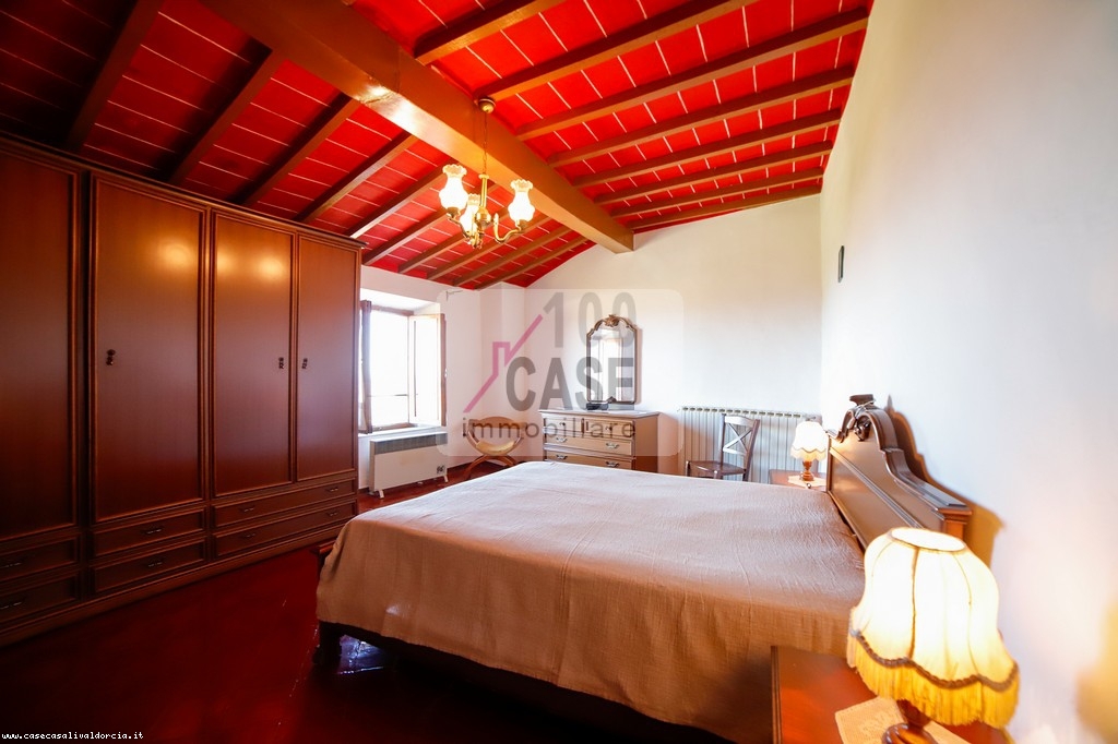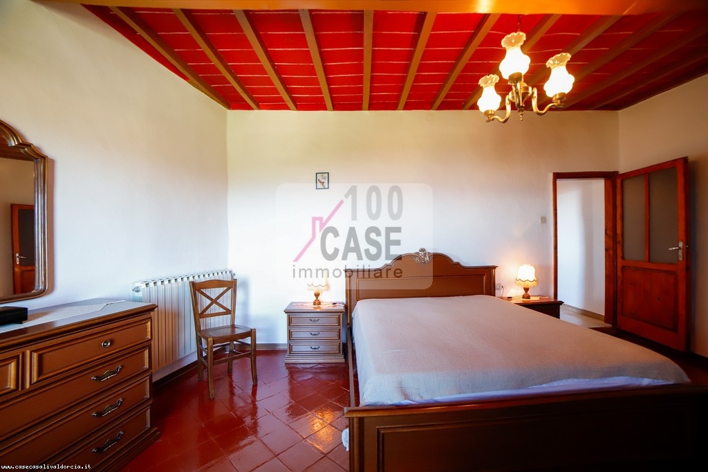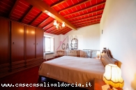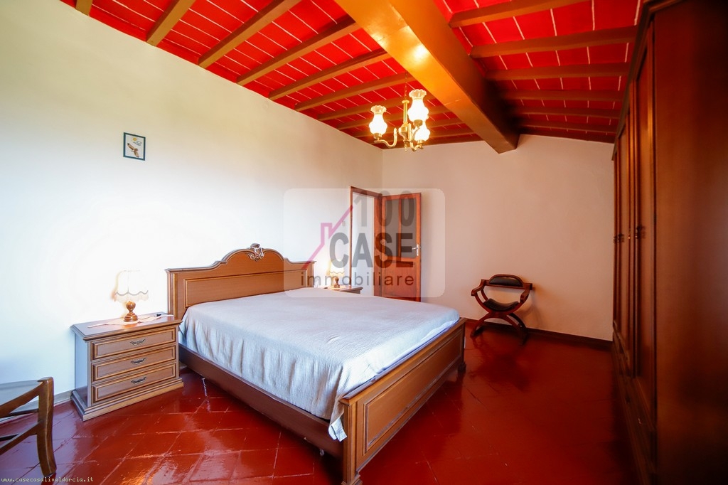 La zona notte comprende due camere matrimoniali, di cui una particolarmente ampia, con il pavimento originale in mattoni rossi d’epoca. Tutti gli ambienti offrono viste aperte e panoramiche sul paesaggio circostante.