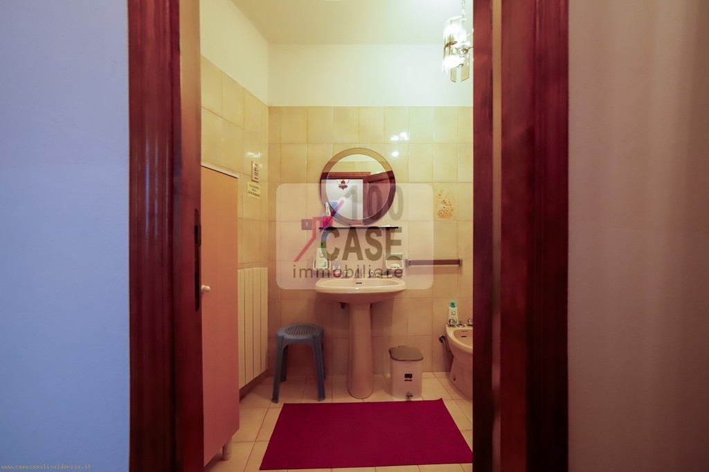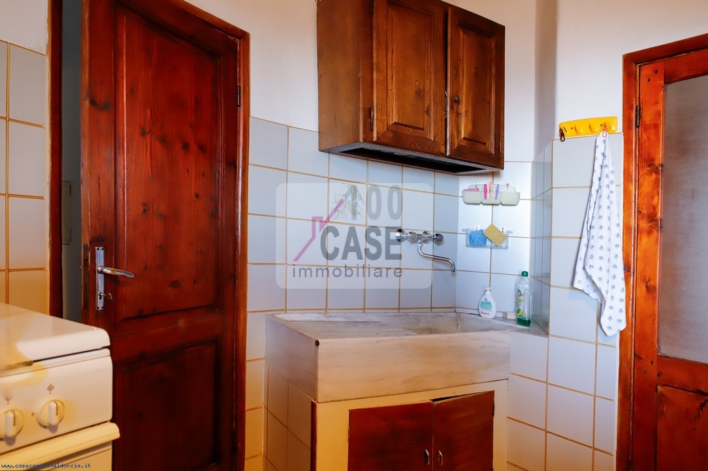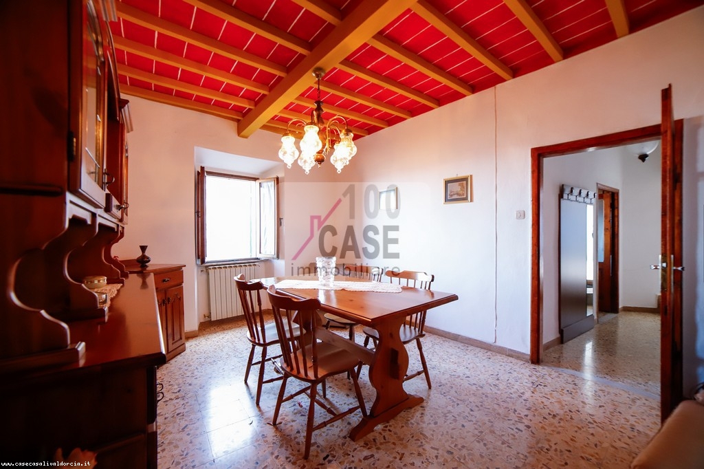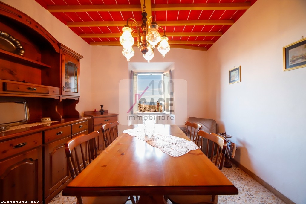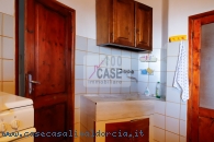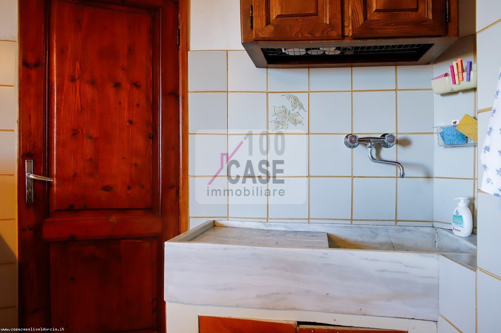 All’ingresso si trova un disimpegno che introduce alla cucina abitabile, spaziosa e luminosa, con un affaccio suggestivo sui tetti in coppi e sulla vallata. La cucina conserva un antico lavello in marmo, dettaglio autentico del fascino toscano.