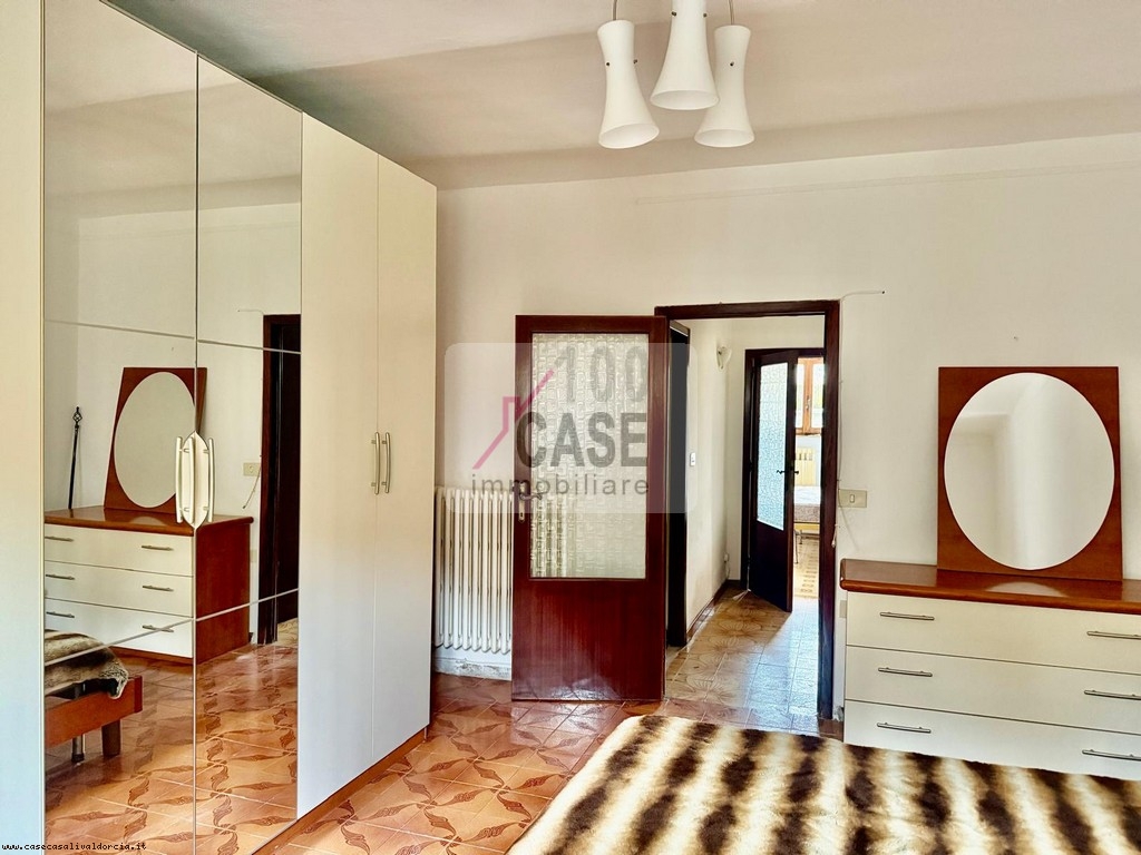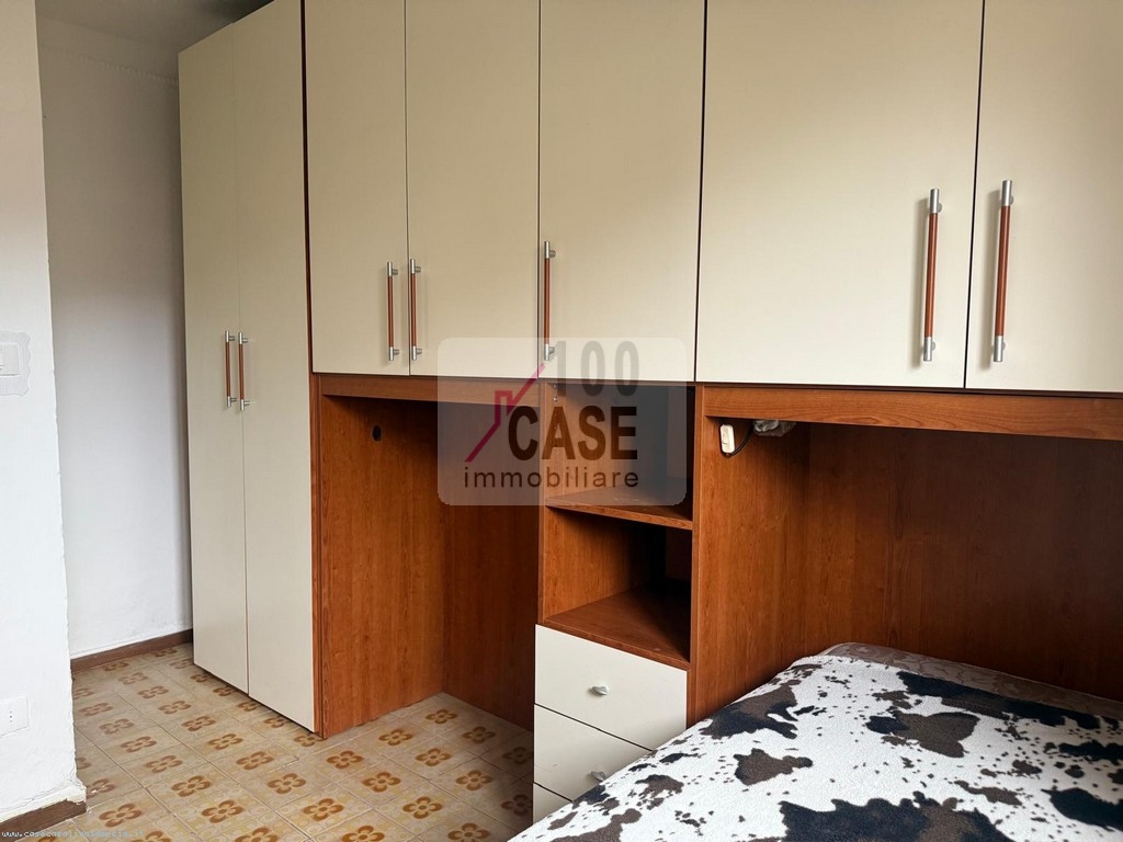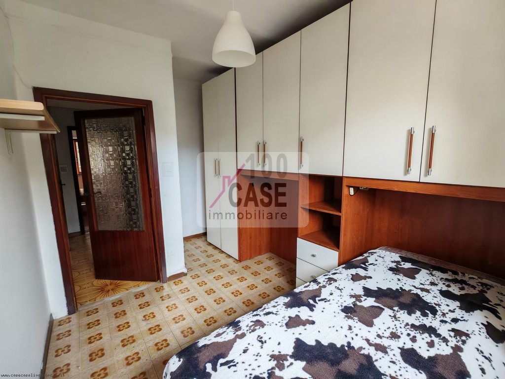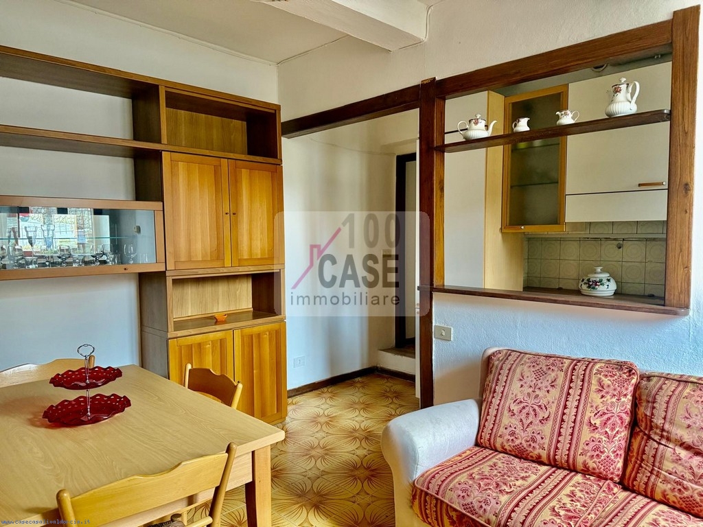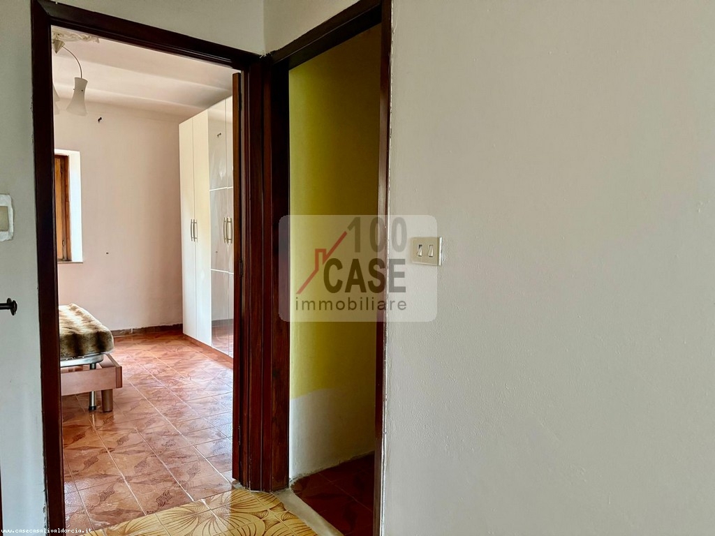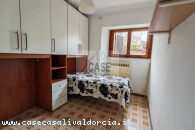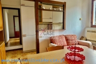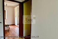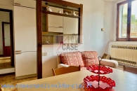 Dall'ingresso condominiale, a piano terra si accede direttamente al soggiorno separato dal cucinotto da un muretto basso che ne delimita le aree lasciando i due ambienti in comunicazione visiva. Continuando nel reparto notte troviamo una prima camera, un bagno, due ripostigli-dispensa, una camera matrimoniale collegata ad un piccolo spazio esterno.