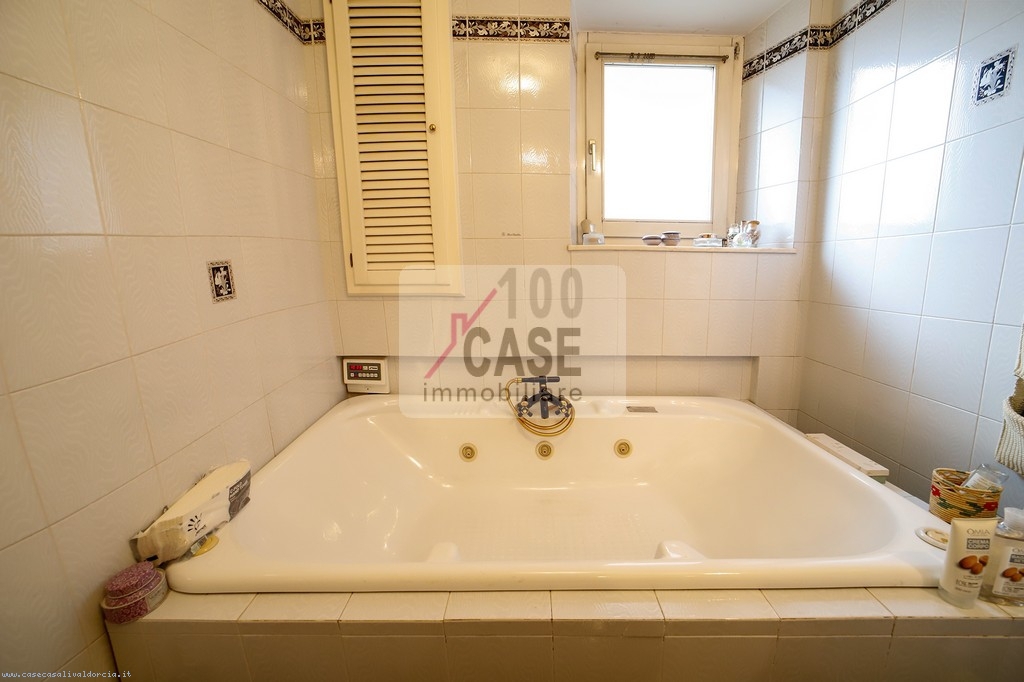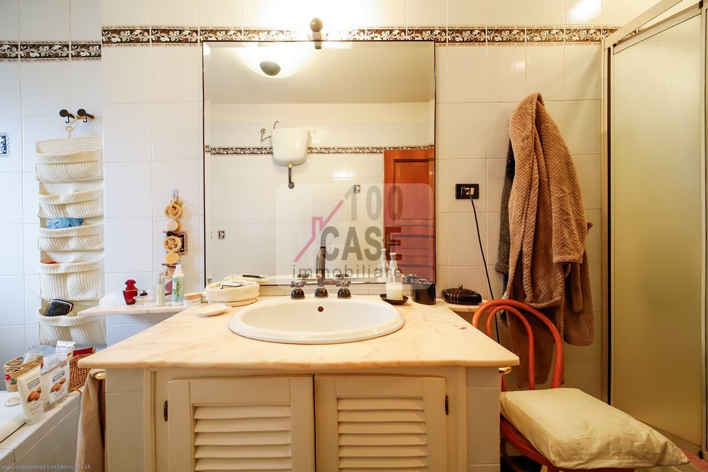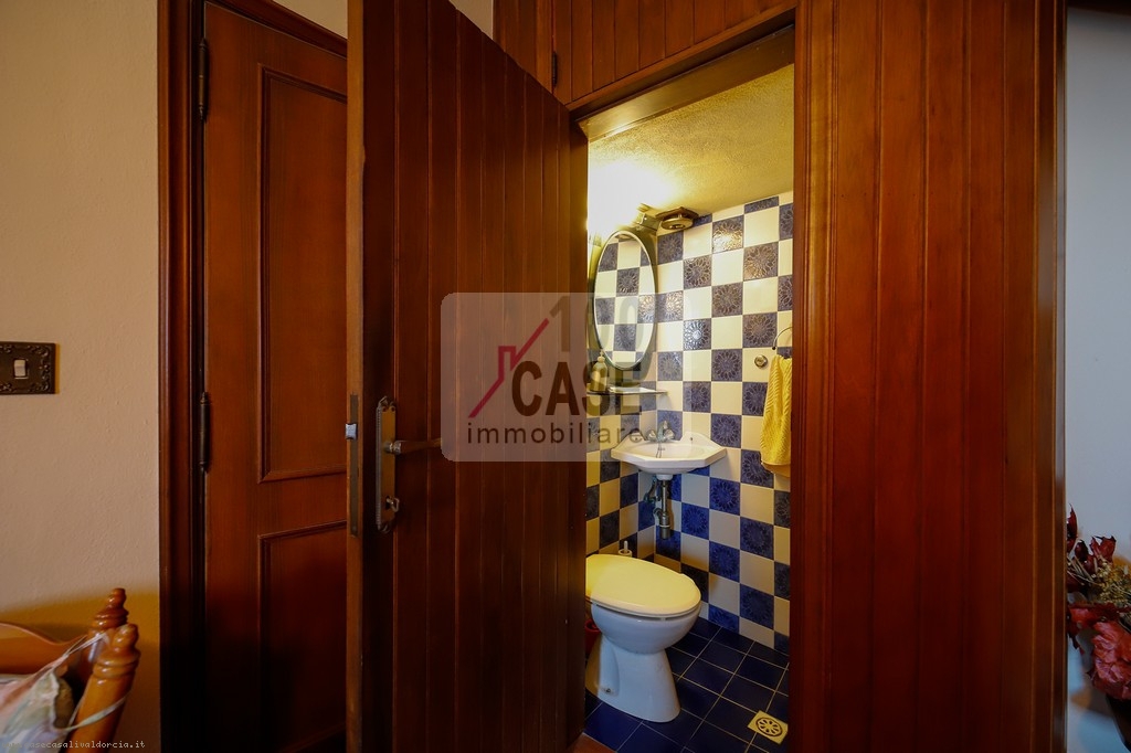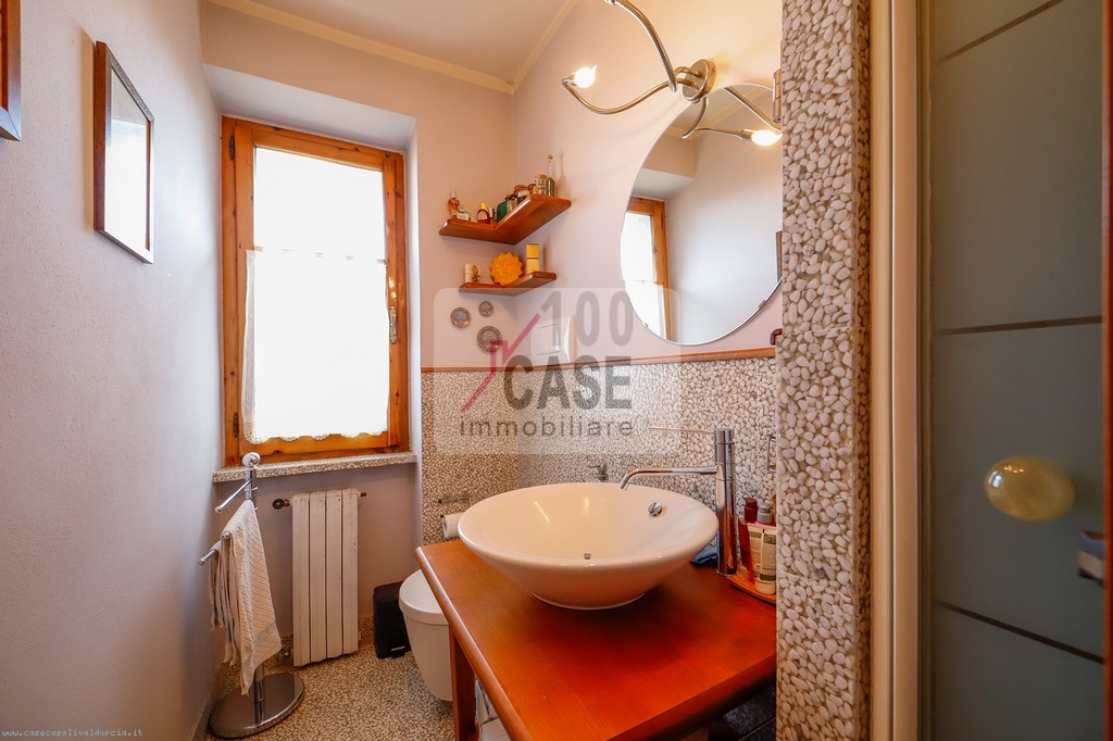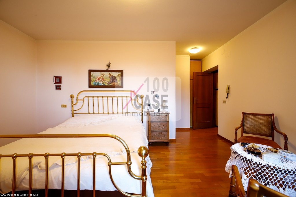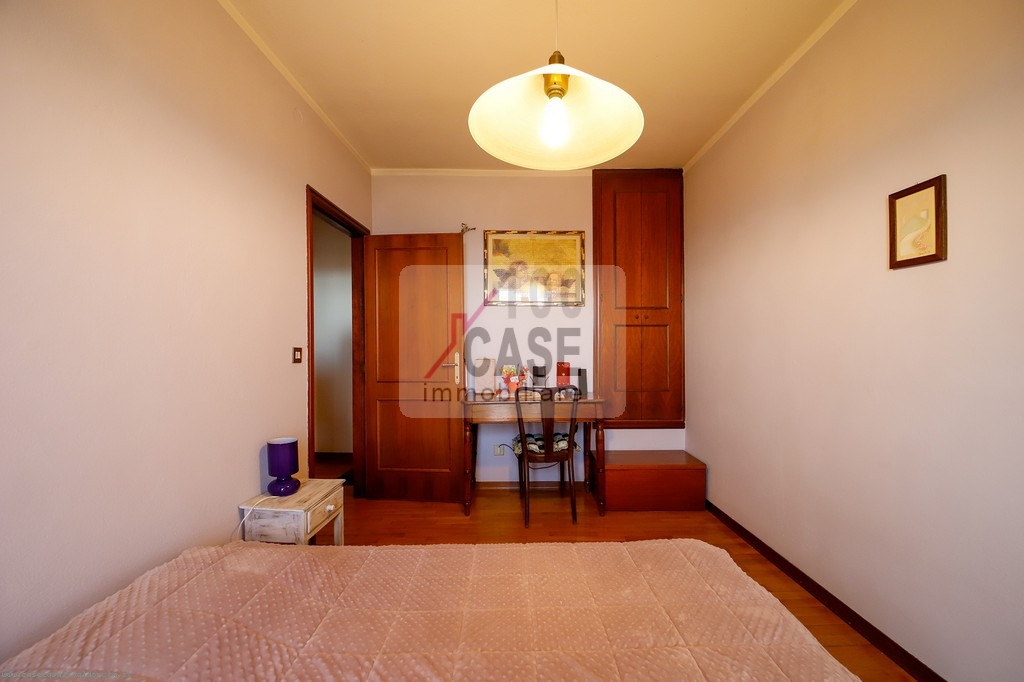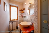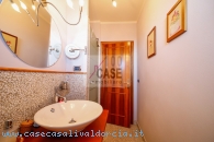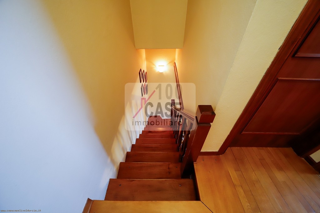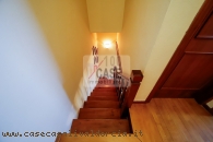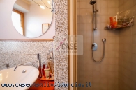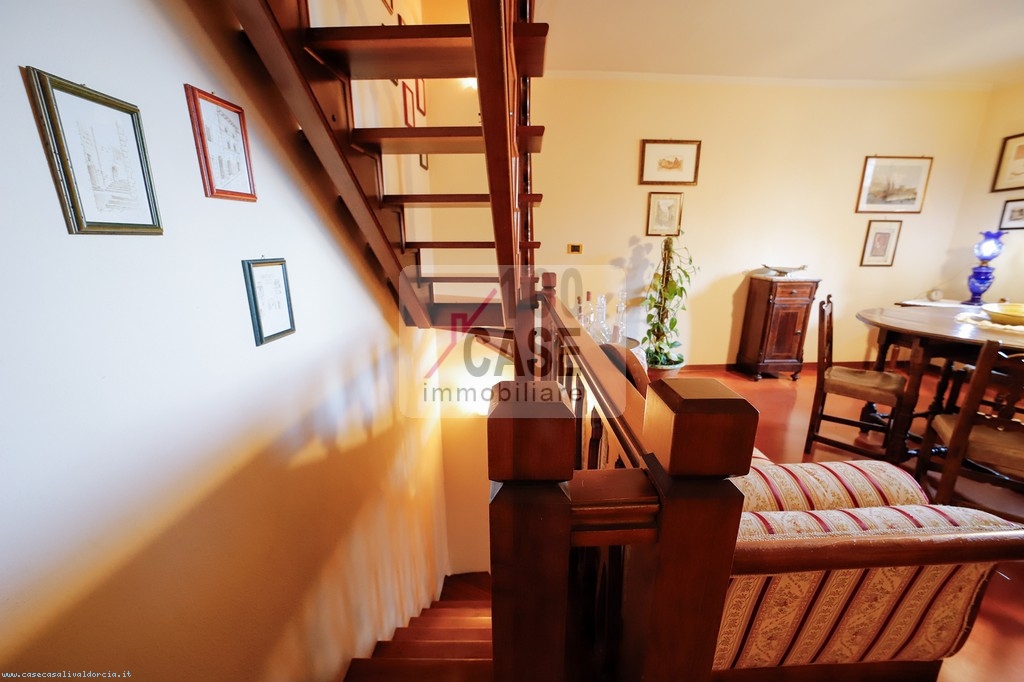 Una scala in legno, dal sapore tradizionale, conduce al piano superiore, dedicato alla zona notte, caratterizzato da un elegante pavimento in parquet. Qui trovano spazio una camera con terrazzino panoramico, un bagno recentemente ristrutturato, un armadio guardaroba lungo il corridoio, uno studio o terza camera, e una camera matrimoniale, accompagnata dal bagno principale con vasca idromassaggio.
