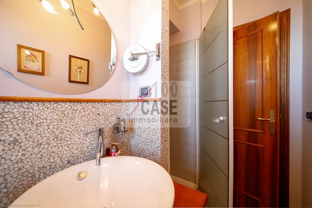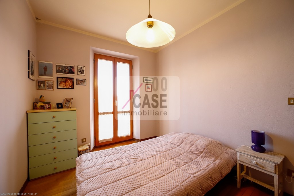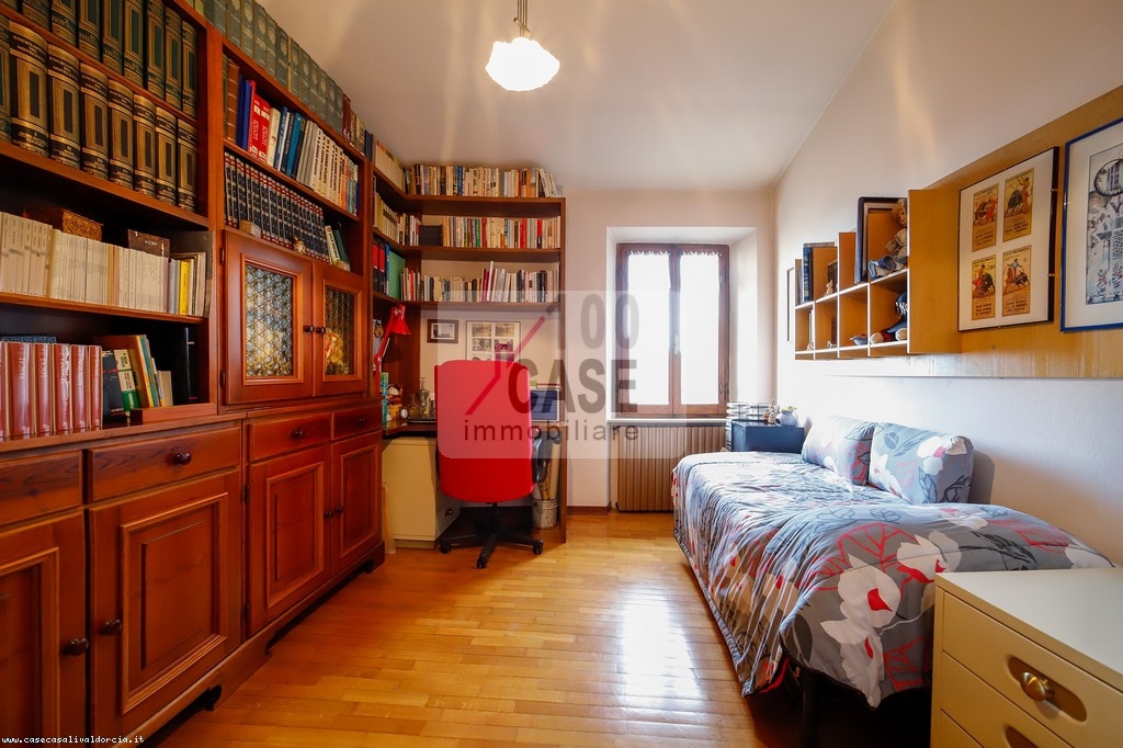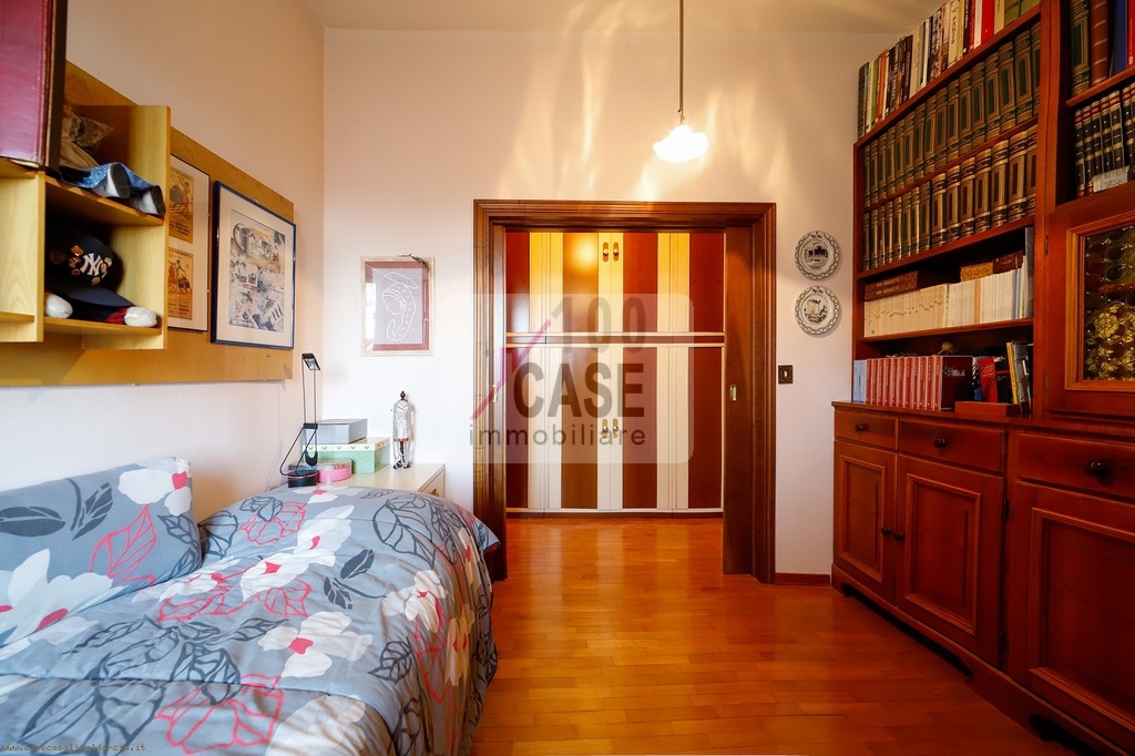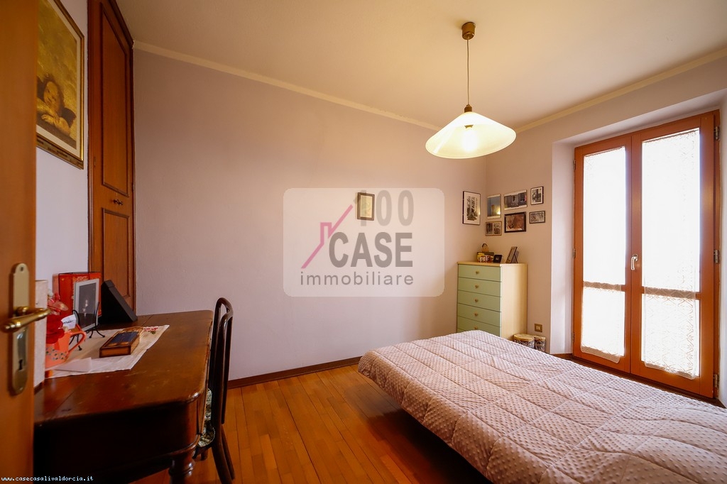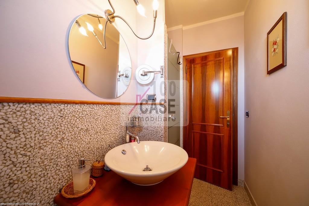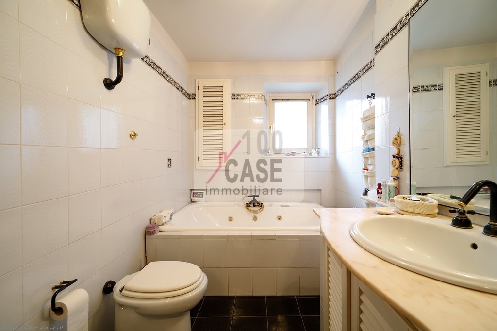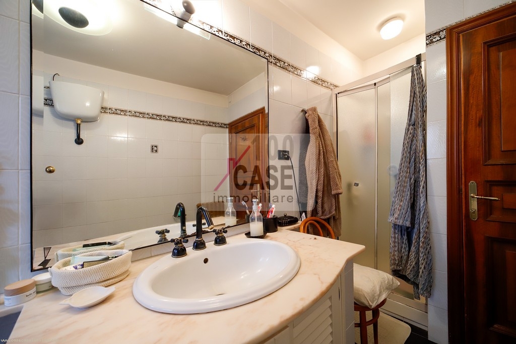 Una scala in legno, dal sapore tradizionale, conduce al piano superiore, dedicato alla zona notte, caratterizzato da un elegante pavimento in parquet. Qui trovano spazio una camera con terrazzino panoramico, un bagno recentemente ristrutturato, un armadio guardaroba lungo il corridoio, uno studio o terza camera, e una camera matrimoniale, accompagnata dal bagno principale con vasca idromassaggio.