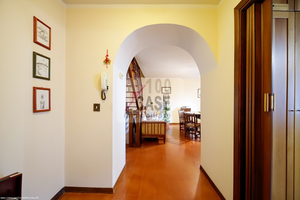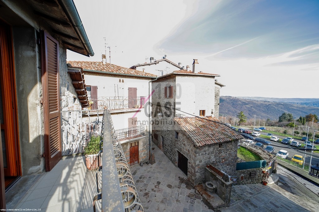 Nel cuore antico ma vivo del centro storico di Abbadia San Salvatore, affacciata su una delle piazzette più iconiche e raccolte del borgo, questa dimora racconta una storia fatta di architettura, luce e spazi fuori dal tempo.