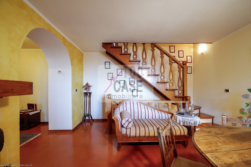 Al piano primo - piano rialzato usando l'altro ingresso - si sviluppa la zona giorno, composta da un salotto di rappresentanza, una cucina e un ampio soggiorno–pranzo, ambienti che conservano un’atmosfera autentica e accogliente, ideali per la vita quotidiana così come per momenti conviviali e di ricevimento.