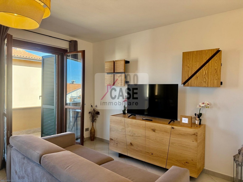L’interno, recentemente rinnovato, si distingue per ambienti curati e accoglienti, arredati con gusto e valorizzati da arredi in parte realizzati artigianalmente, espressione di qualità e autenticità. La zona giorno si sviluppa in un soggiorno luminoso aperto sul cucinotto, con accesso diretto al terrazzo, perfetto come naturale prolungamento degli spazi abitativi.